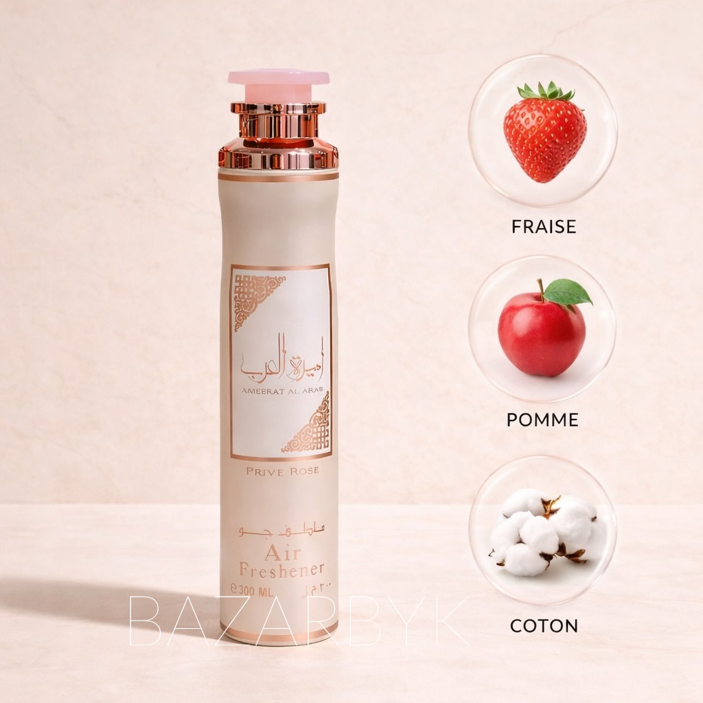 Ameerat Al Arab Rose Privée est un désodorisant d’intérieur élégant et féminin qui enveloppe vos espaces d’un voile floral-fruité aussi doux que raffiné. Une fragrance luxueuse, idéale pour parfumer délicatement votre maison, voiture ou textiles.