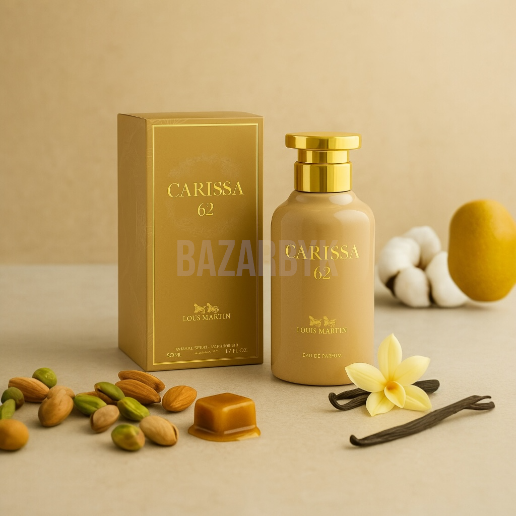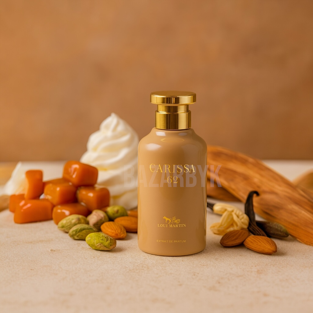 Carissa 62 de Loui Martin est une fragrance gourmande et solaire, où la pistache et l’amande ouvrent la danse avec une douceur croquante et irrésistible. Le cœur dévoile un accord fondant de caramel salé et de vanille, à la fois régressif et raffiné, qui s’enrobe d’une base boisée élégante de santal. Un parfum moderne, addictif et chaleureux, pensé pour séduire dès le premier sillage.