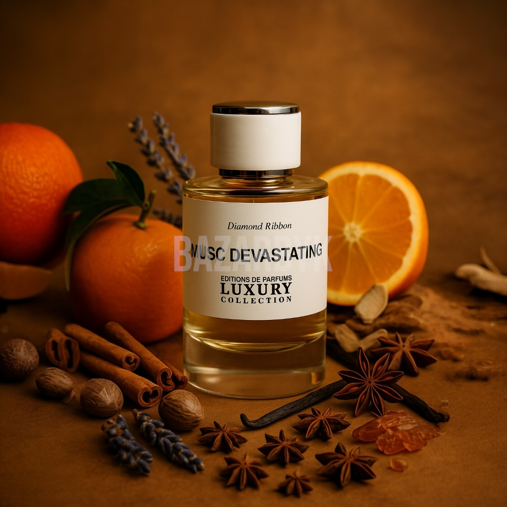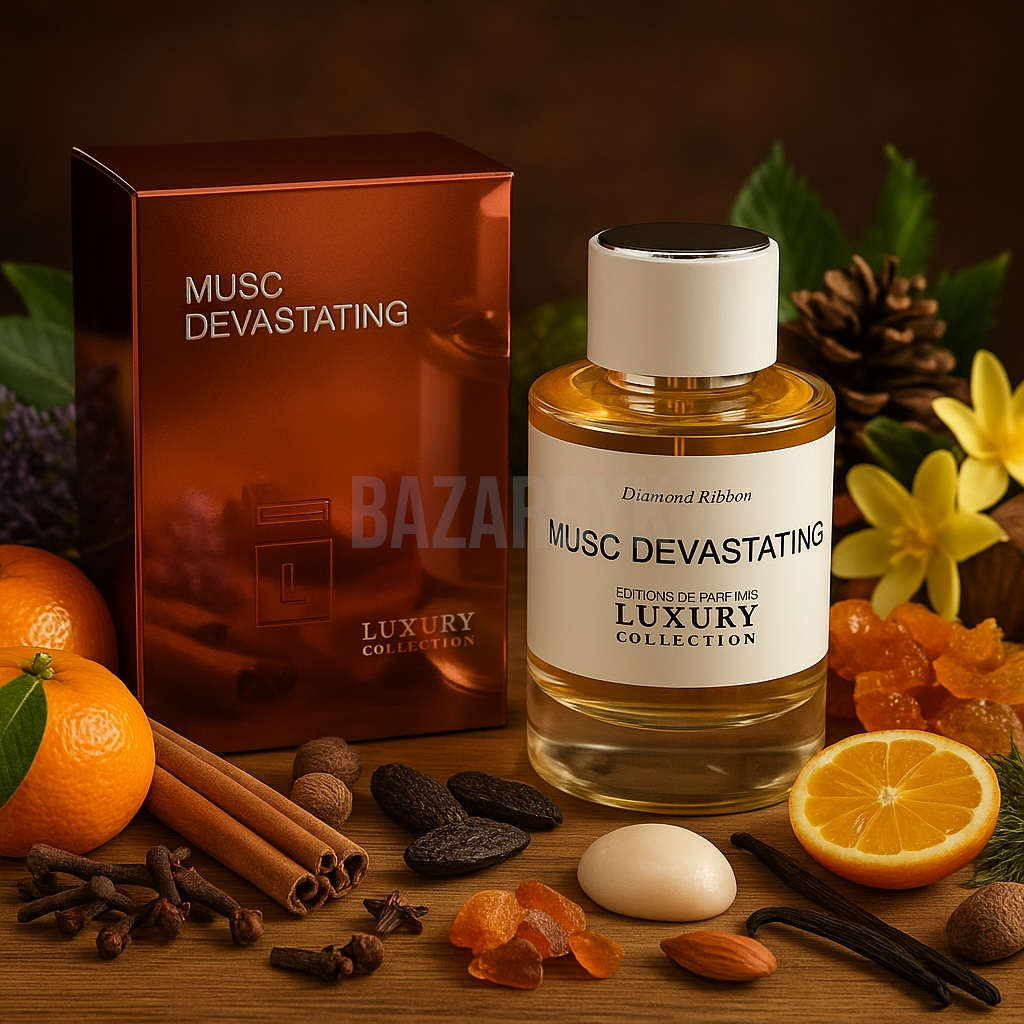Musc Devastating Edition Luxury est une fragrance riche et intense, où les agrumes pétillants rencontrent les épices chaudes, avant de s’épanouir dans un fond boisé et musqué d’une grande élégance. Une composition sophistiquée et magnétique, pensée pour celles et ceux qui aiment les parfums puissants et enveloppants.