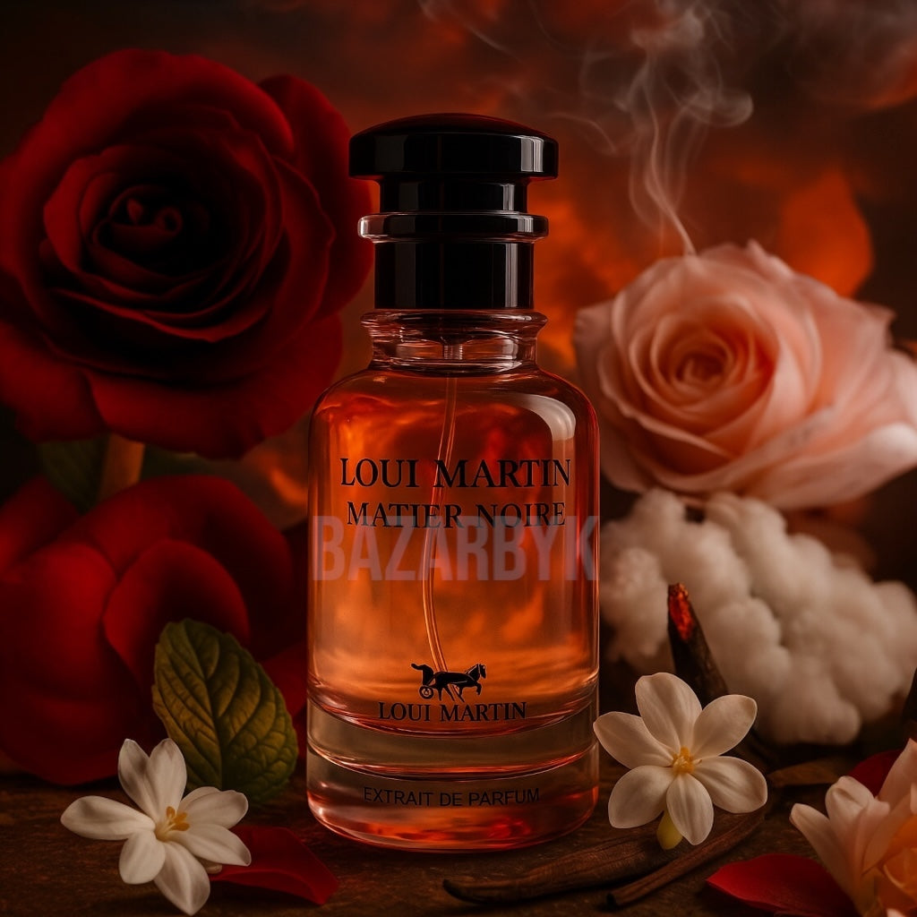 Matière de Loui Martin est une fragrance mystérieuse et élégante. Ce parfum marie la richesse des fleurs profondes à la puissance des bois et de l’encens, pour une signature olfactive sombre, florale et résolument sophistiquée.