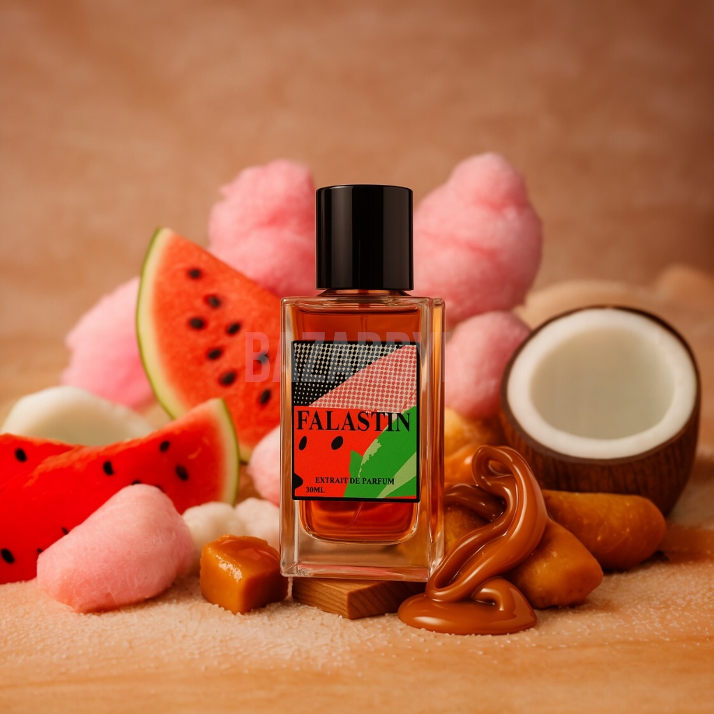 Falastin de la Maison Eau d’Or est une fragrance gourmande et envoûtante, véritable hommage à la douceur et à la générosité olfactive. Cette création luxueuse s’ouvre sur une vanille raffinée et crémeuse, se déploie dans un cœur fruité et sucré, pour enfin laisser sur la peau une empreinte délicatement caramélisée et réconfortante. Un parfum riche, velouté et intensément addictif.