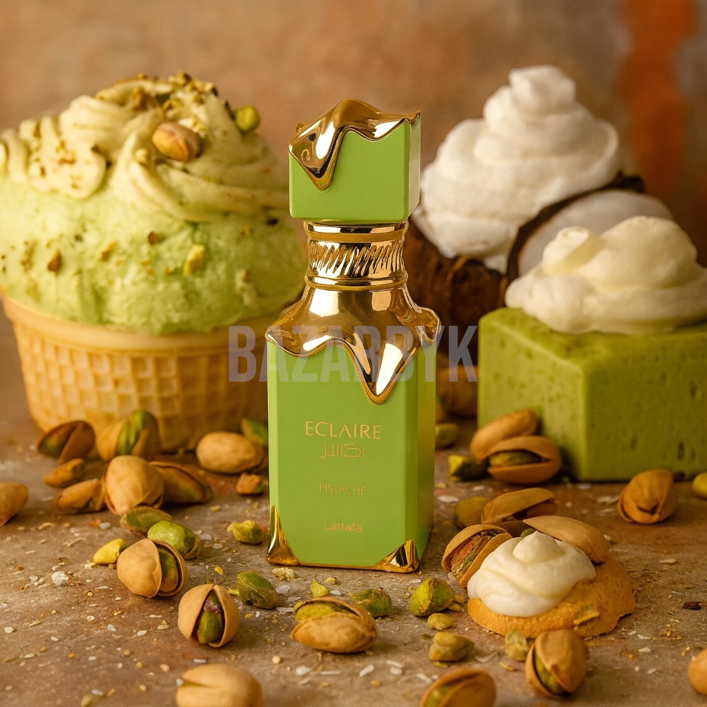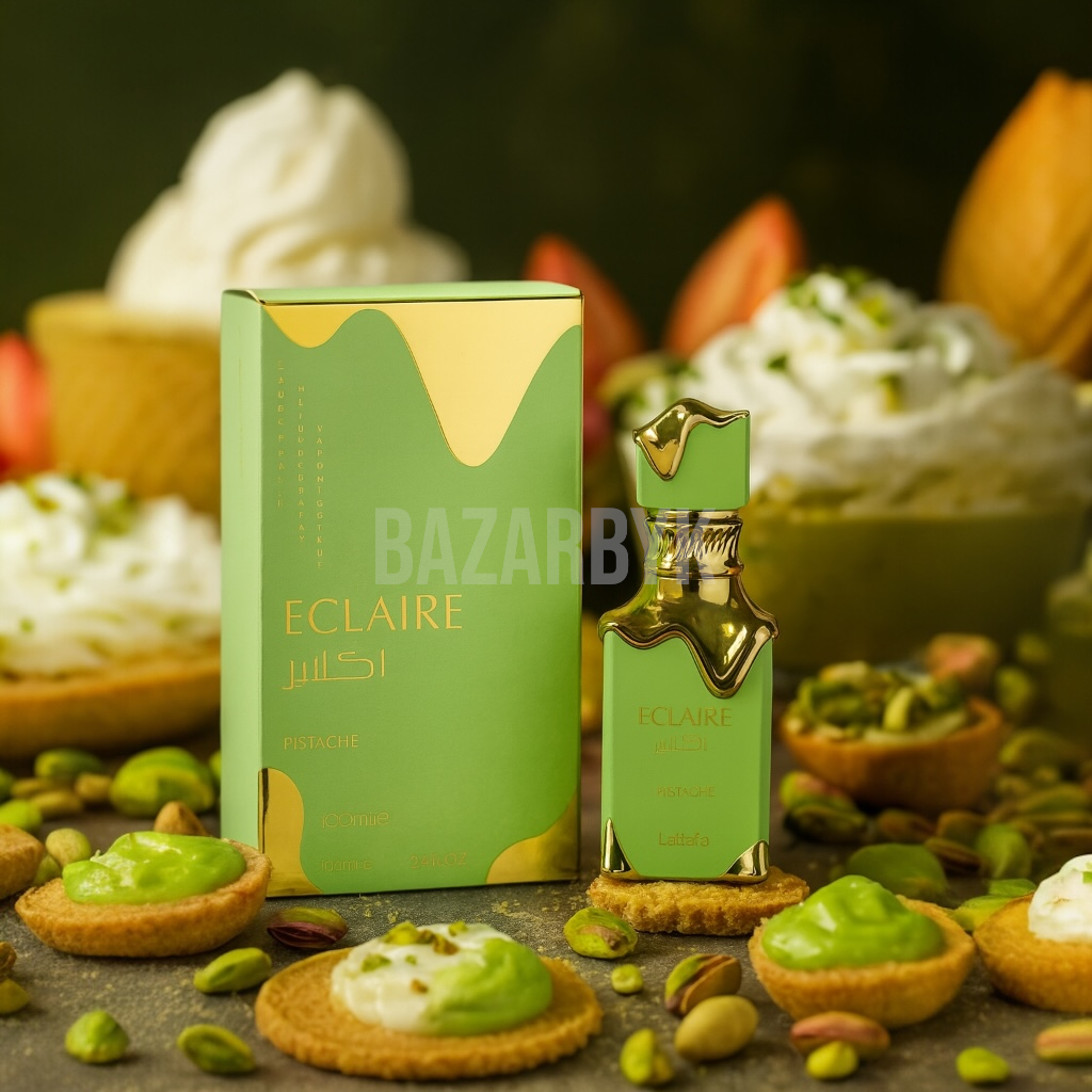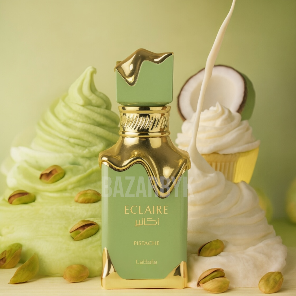 Éclaire Pistache – Lattafa : l’alliance délicieuse de la pistache crémeuse et des douceurs sucrées, pour une empreinte élégante et addictive.